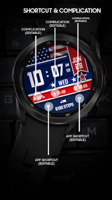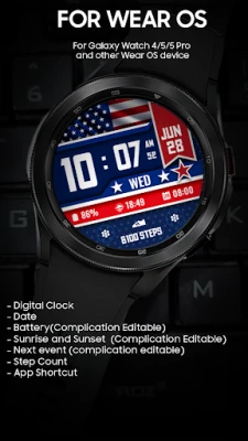 Digital Watchface for celebrate Independence Day. For Wear OS.