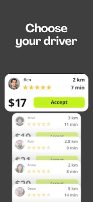 It's simple and fast to request an affordable ride — just enter points "A" and "B" in this ride share app, name your fare and choose your driver.