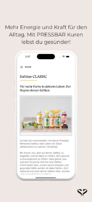 Starte deine individuelle Saftkur mit der PRESSBAR App und bekomme Erinnerungen, wann es Zeit für deinen nächsten Saft ist! Perfekt für Saftfasten und eine bewusste Ernährung.