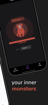 Each day you resist an addiction, you earn Willpower Points. These points help you fight and defeat monsters that represent your bad habits. But beware, a single relapse feeds the monster and costs you hard-earned points.
