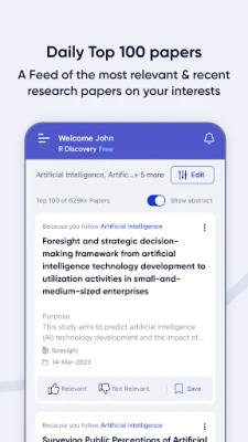 R Discovery is a free AI tool for researchers and students to find and read research papers. This top-rated literature search and reading app recommends the latest, most relevant research articles based on your interests from its extensive research repository. With advanced AI for research and unique features, R Discovery saves time and makes your literature reading more efficient. We search, you read. It’s that simple!