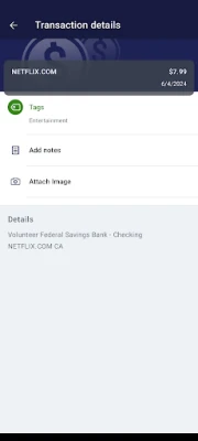 - Keep your transactions organized by allowing you to add tags, notes and photos of receipts and checks.